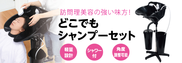 社会の高齢化が進む中、訪問理美容サービスのニーズも年々高まっております。「どこでもシャンプーセット」は、移動式シャンプー台・モバイルシャワー・排水・吸水タンクがセットになった、短時間でどこでも簡単にシャワーを提供できる訪問理美容に最適なアイテムです。「美通販」では、訪問理美容事業を行っているサロン様やこれから訪問理美容を考えている理美容師様におすすめのアイテム「どこでもシャンプーセット」を、業界最安値を目指した美通販会員特別価格でご提供いたします。