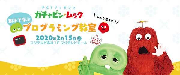 プログラミングクラブネットワーク(以下、PCN)は、フジテレビライツ事業部の後援を受けて「ガチャピン・ムック プログラミングコーチチーム(PCT)」を発足、初回のプログラミング教室を開催します。当日は90分の講座を3回実施するほか、プログラムで制御するこどもじどうしゃ「Radish」の試乗などを行います。