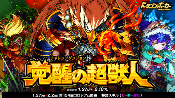 株式会社アソビズム(本社:東京都千代田区、代表取締役:大手智之)は、App Store・Google Playにて好評配信中のリアルタイム合体カードバトル『ドラゴンポーカー』で、2020年1月27日(月)より、復刻チャレンジダンジョン「覚醒の超獣人」が開催中です。