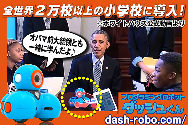 プログラミング教育のデモンストレーションを行うオバマ前大統領と一緒に登場しています。
