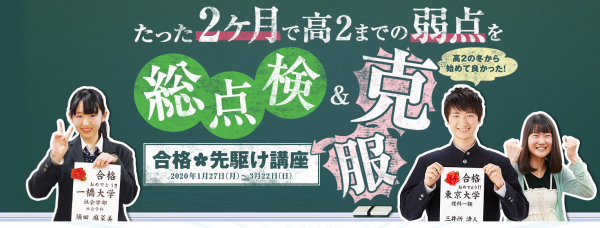教育(予備校・個別指導教室・通信講座)を手掛ける、ブレーンバンク株式会社(所在地:東京都新宿区四谷、代表取締役:植野治彦)は、2020年1月27日から合格先駆け講座を開講しました(先着順申込受付中。3月22日まで)。