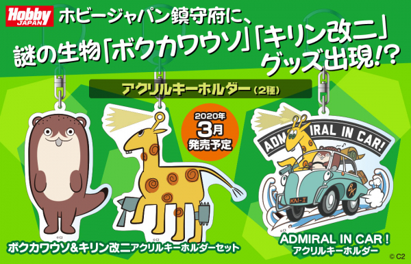 株式会社ホビージャパン(本社:東京都渋谷区、代表取締役社長:松下大介)は、謎の生物「ボクカワウソ」と「キリン改二」のアクリルキーホルダーならびにマグネットシート『マグコレ』シリーズを2020年2月6日(木)より受注開始いたしました。
