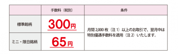 月間2,000枚(注1)以上のお取引で、翌月中は特別優遇手数料を適用(注2)いたします。