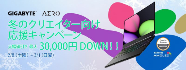 また、GIGABYTEでは、2020年2月8日~2020年3月1日まで「冬のクリエイター向け応援キャンペーン」として、割引価格で販売いたします。その価格については正規販売店各社にお問い合わせください。