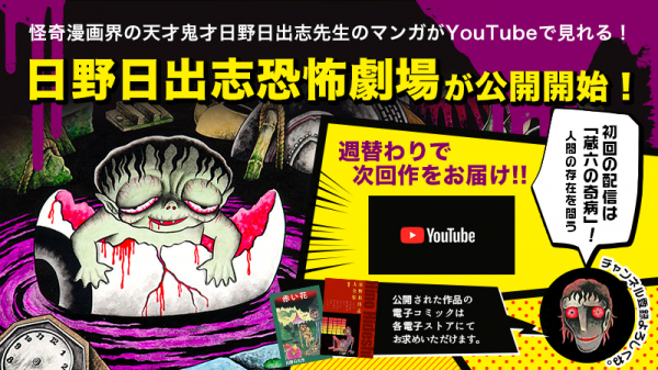 怪奇漫画界の天才鬼才日野先生のマンガをYouTubeでお楽しみいただけます。