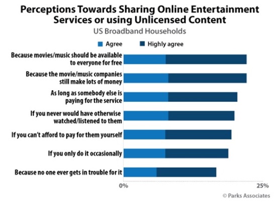 Parks Associatesのコントリビューティングアナリスト、スティーブン・ホーリー氏は、「84億米ドルのうち、その他の被害は、制作会社、配給元、改造された消費者デバイス、他の著作権侵害者などから提供されている動画コンテンツの盗用に起因している」と指摘しています。