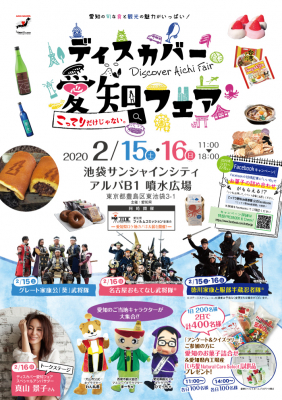 愛知の観光物産展「こってりだけじゃない。ディスカバー愛知フェア」は、イベント企画制作会社「株式会社アルファポイント」が企画・運営・管理を行い2020年2月15日・16日の2日間(11:00~18:00)、池袋サンシャインシティ アルパB1 噴水広場にて開催いたします。