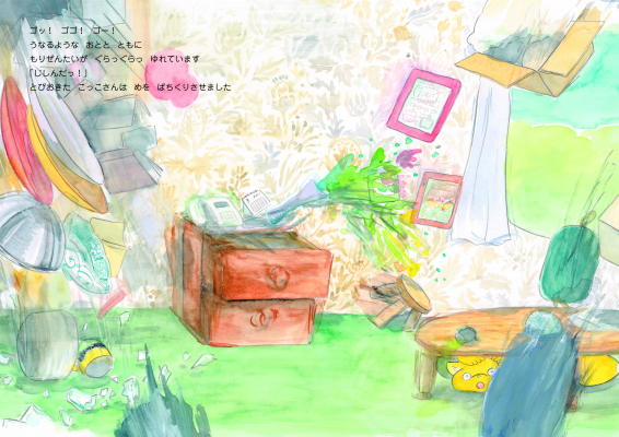 もりのきでんしゃが、地震と津波が起きた海沿いの町に、生き物たちを救いに行きます。