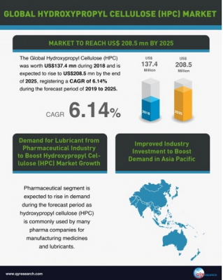 株式会社グローバルインフォメーションは、市場調査レポート「ヒドロキシプロピルセルロース (HPC) の世界市場:2019年」 (QYResearch発行) の販売を2月12日より開始いたしました。
