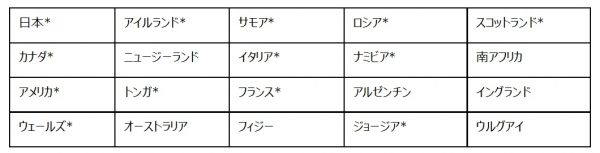 日本* アイルランド* サモア* ロシア* スコットランド*