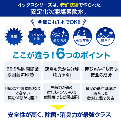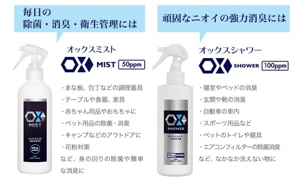 OXシリーズとは、これまでの除菌・消臭スプレーの問題を全て解決した、安全且つ最新の除菌消臭・ウイルス対策製品です。