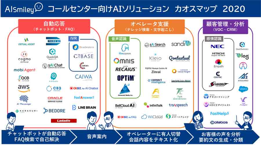 ※このカオスマップはコールセンター向けAIソリューションの導入を検討している企業に対して配布しております。同業他社・競合他社への提供はしておりませんので、あしからずご了承ください。