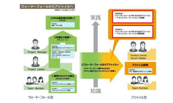 ・ウォーターフォールからアジャイルへの移行(トランスフォーメーション)やアジャイル型プロジェクト管理の勘所を学習