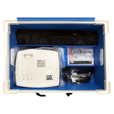 プロジェクターのレンタルサービスの先例はありますが、スクリーンメーカーをグループ内に持つ強みを活かし、レンタルプロジェクターにはフレキシブルスクリーン*3の付属を標準とすることが特長で、最大120インチの画面サイズを楽しむことができます。また商品が届いてすぐ、大画面を投写できるようにHDMIケーブルも付属しています。さらに専用箱でお送りいたしますので、開梱時、返却時の梱包が容易なことも本サービスの特長です。レンタル期間は2泊3日を1単位として最長14泊15日としてサービスを開始いたします。料金は往復送料込みのシンプルな料金設定です。