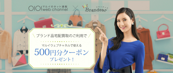 キャンペーンURLよりブランディア査定にお申し込みを行ない、査定希望商品をブランディアにお送りいただいたお客様にマルイウェブチャネルでご利用頂ける「500円分のWEBクーポン」をプレゼントいたします。