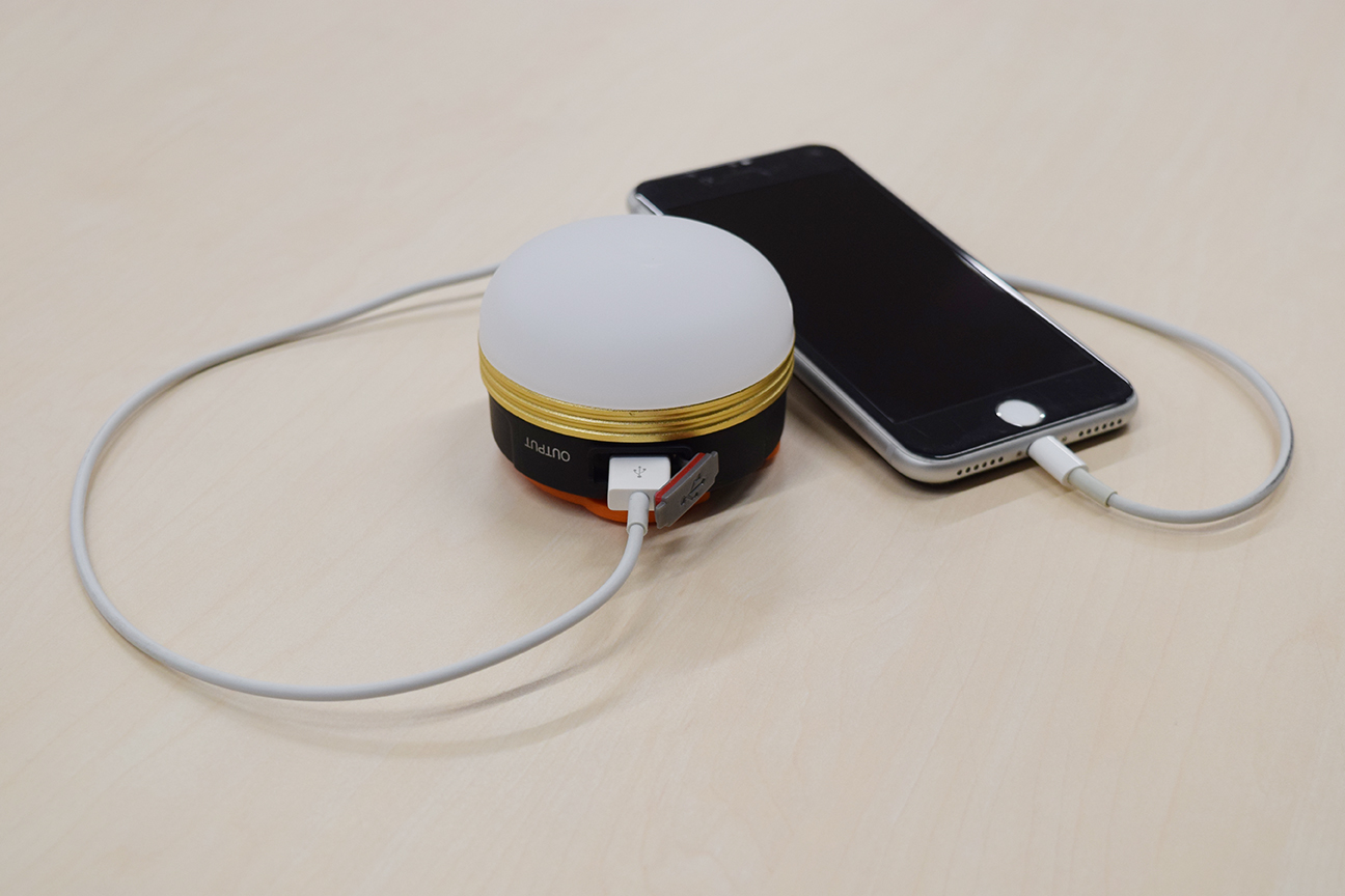 ・充電式LEDランタンは電池容量1800mAhで、最大30時間の照明が可能。