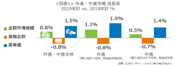 外食・中食市場の2019年市場規模は21兆802億円で0.8%増