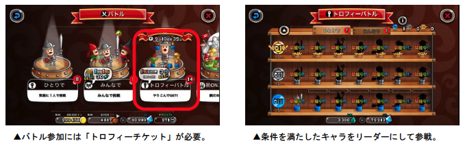 トロフィーバトルは、出場条件を満たしたキャラをリーダーにして戦い、“トロP”を獲得することが目的のバトルです。