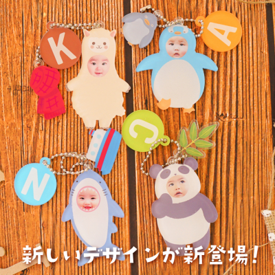 きぐるみキーホルダーは「きぐるみ」デザインと一緒にお子様の写真をプリントしたアクリルのキーホルダーです。