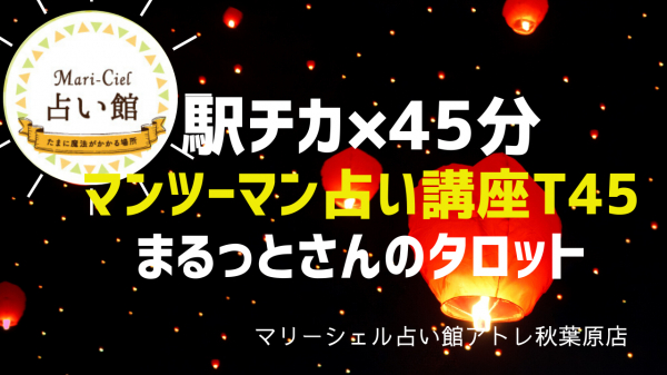 マリーシェル占い館アトレ秋葉原店においては、『まるっとさんによるタロット占いのマンツーマン講座T45』を現在提供開始いたします。3月15日から、4月度分の講座予約受け付けを開始いたします。
