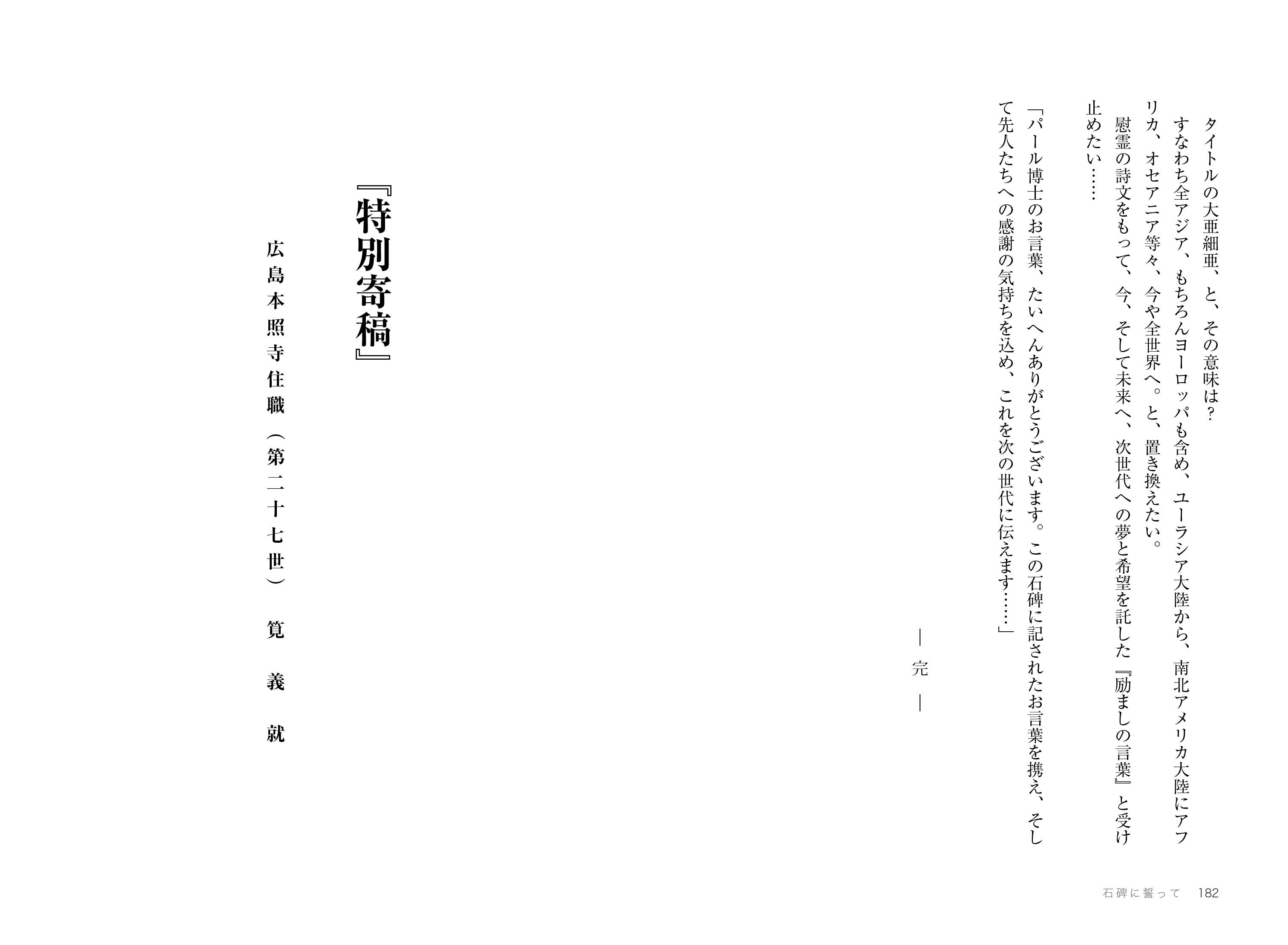 広島を訪問したインドのパール博士は、この一文に疑問を投げかけた。パール博士の広島での足跡をおったトーマス青木、エセ男爵、ひでみ、コスケの4人は本照寺でパール博士の碑文をみつける。なぜ、この寺に碑文があるのか。住職の筧氏とどういう関係があったのか。謎解きは、筧氏が広島に赴任する前の任地・満洲國へととぶ。そこには満洲國建国にあたってインドと日本の特別な関係があった……。