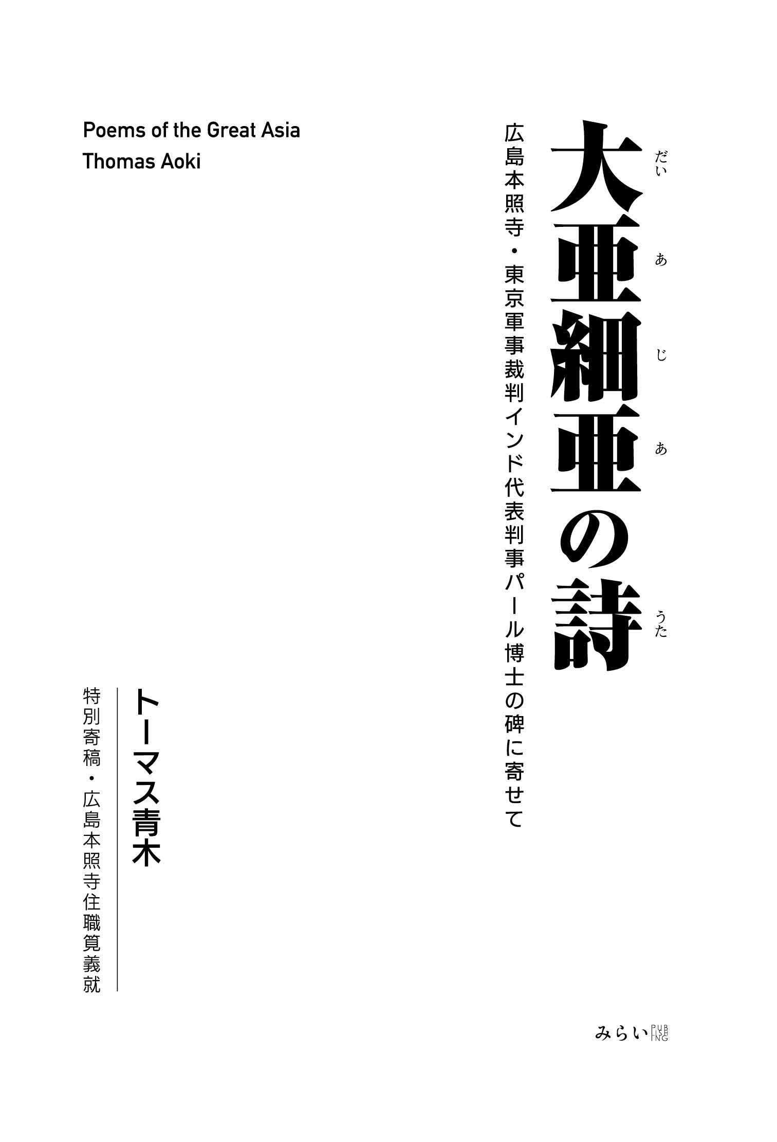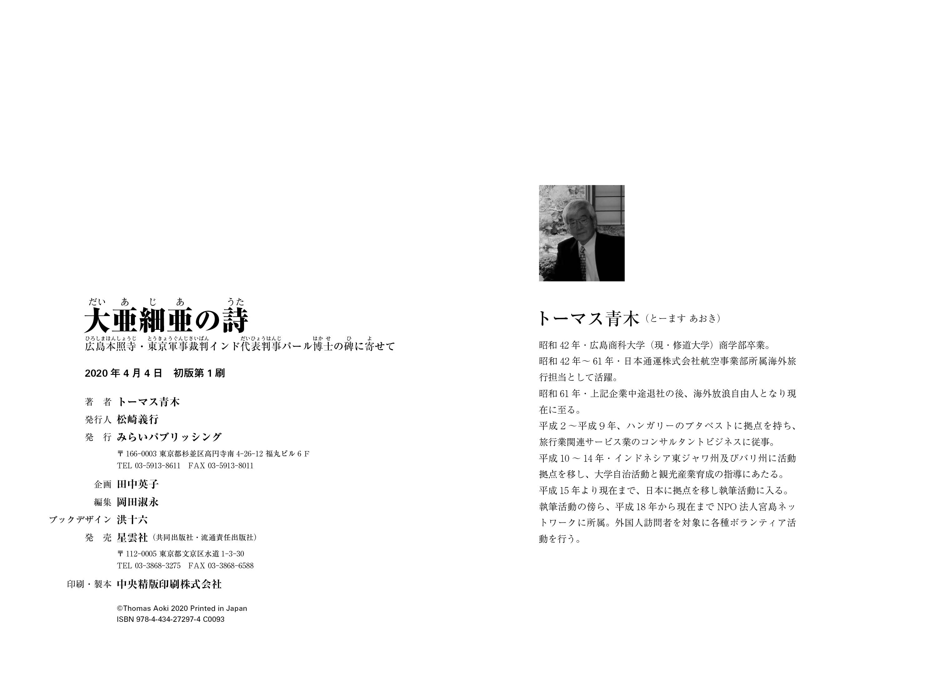 みらいパブリッシング(所在地:東京都杉並区高円寺、代表取締役:松崎義行)は『大亜細亜の詩』 を2020年3月25日に刊行します。 著者:トーマス青木 四六判 192ページ 本体 1800円+税 ISBN:978-4-434-27297-4 書籍詳細:https://www.amazon.co.jp/dp/4434272977