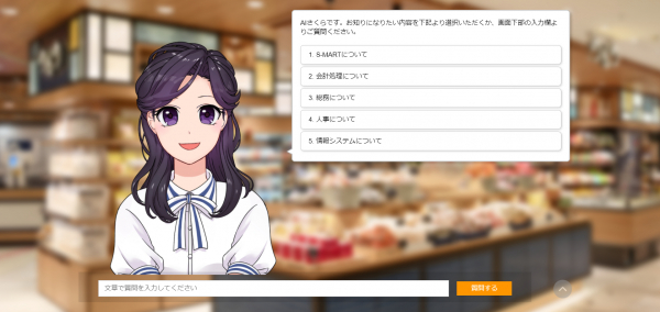 人工知能(AI)接客システム「AIさくらさん」は、音声とテキストでユーザーからの質問に回答する人工知能(AI)接客システムです。