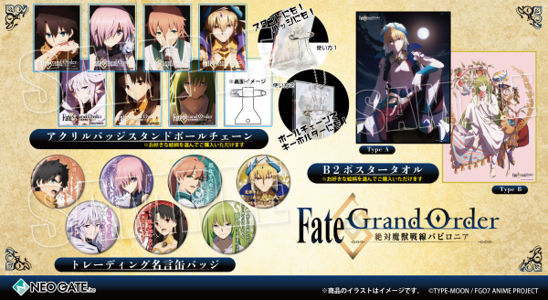 TVアニメ「Fate/Grand Order -絶対魔獣戦線バビロニア-」より、【アクリルバッジスタンドボールチェーン】【トレーディング名言缶バッジ】【B2ポスタータオル】が登場!