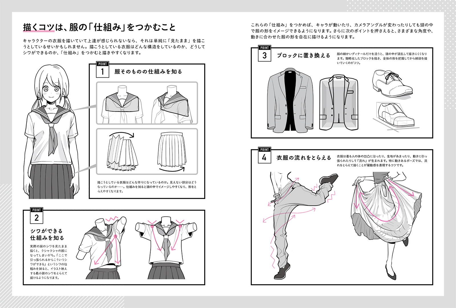 服の仕組みから角度別の描き方まで