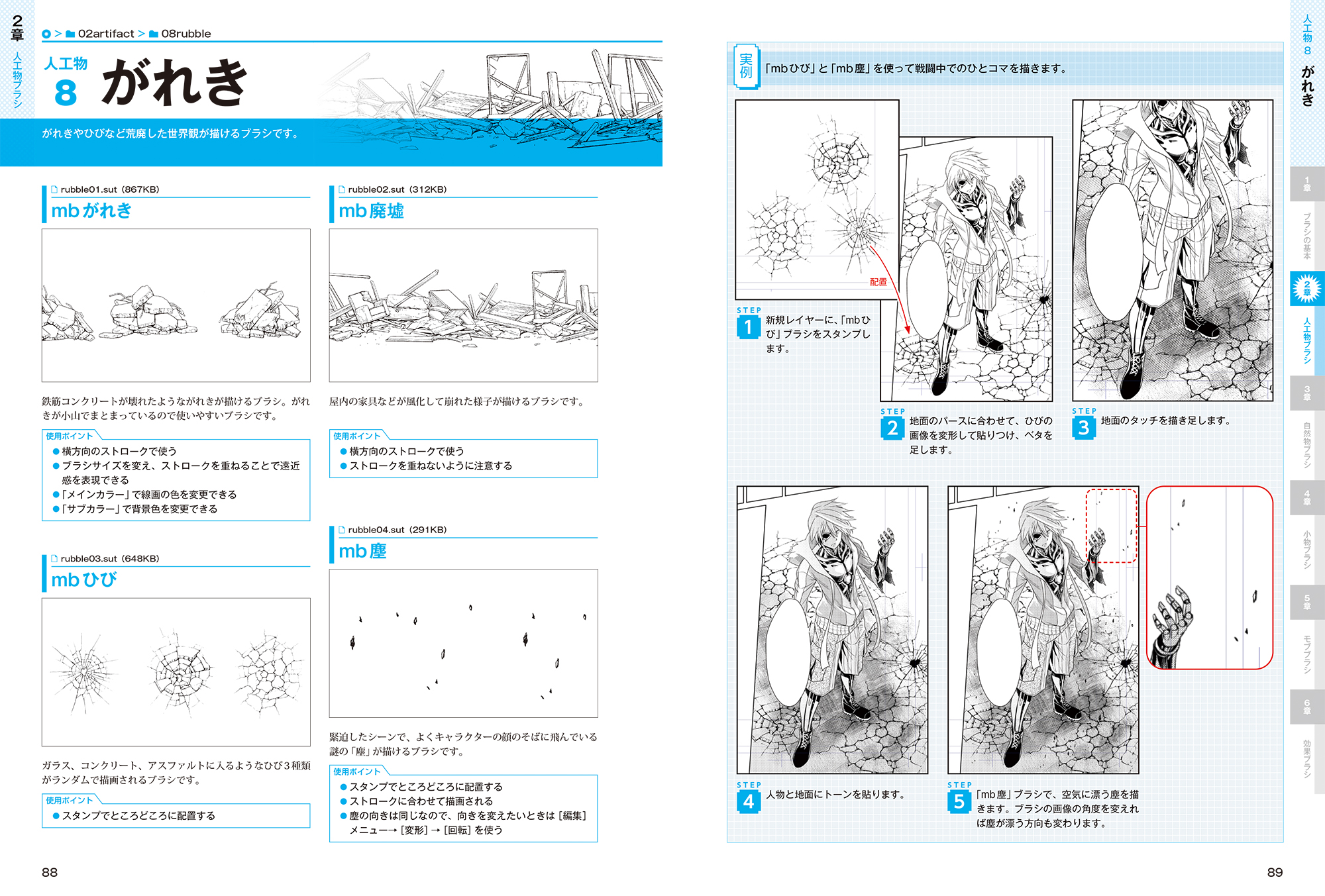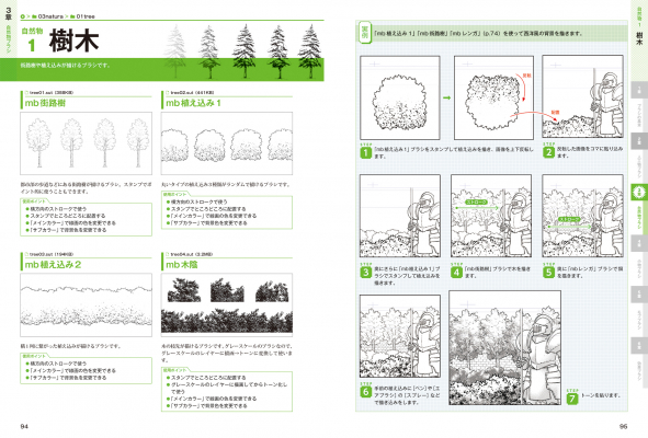 人気マンガ家による、本書収録のブラシを実際に使った作例マンガも収録。魅力あふれる作品づくりのプロテクニックを見て学ぶことができます。