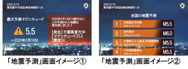 Amazon Alexaスキル『My地震予測』はAmazon の音声アシスタント「Alexa(アレクサ)」を利用して、子供からお年寄りまで誰でもAlexaに呼びかける事で、簡単に日本全国の約2週間以内で起こると予測されている地震についての情報を音声で教えてくれる便利で身近なサービスです。更に家族や友人の住んでいる地域に地震の予測が発生している場合、お知らせメールを利用して地震予測内容を相手に知らせる機能も実装予定となっております。