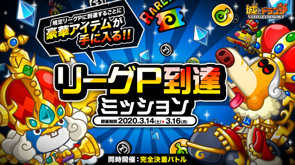 株式会社アソビズム(本社:東京都千代田区、代表取締役:大手智之)は、App Store・Google Playにて好評配信中の『城とドラゴン』で、「リーグ」および「リーグP到達ミッション」を2020年3月14日(土)より開催いたします。