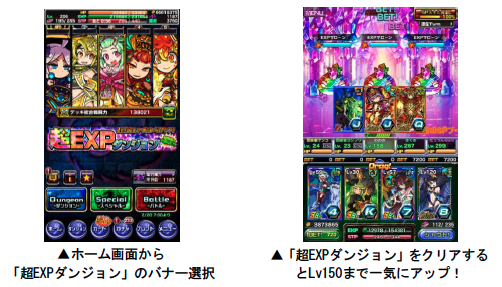 ゲームを始めてチュートリアルが終わったら「超 EXP ダンジョン」に挑戦してみよう。簡単プレイで経験値を大量獲得!レベルアップで、デッキのコストやスタミナが大幅アップさせて、強力なカードでデッキを編成してコラボ限定のダンジョンに挑戦しましょう!