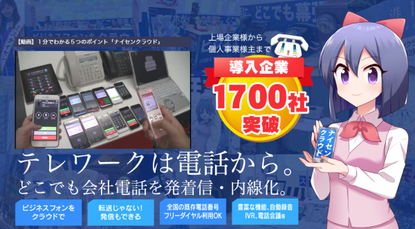 ナイセンクラウドは、インターネットさえあれば、ビジネスフォンやコードレス電話と同等以上の高度な機能が使える、クラウド電話サービスです。
