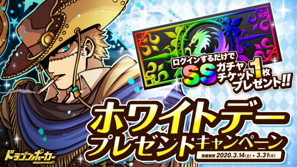 株式会社アソビズム(本社:東京都千代田区、代表取締役:大手智之)は、App Store・Google Playにて好評配信中のリアルタイム合体カードバトル『ドラゴンポーカー』で、2020年3月14日(土)より「ホワイトデープレゼントキャンペーン」を開催しております。