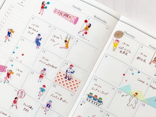 手帳やノートに貼って楽しんでいただけるだけでなく、カレンダーとしてもそのまま使えるデザインになっています。