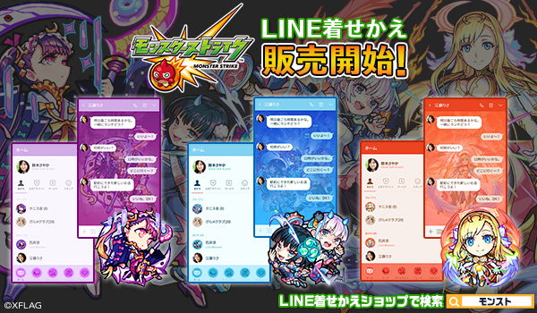 株式会社インクルーズ(東京都渋谷区、代表取締役社長 山﨑 健司)は、LINE株式会社(東京都新宿区、代表取締役社長 出澤 剛)が運営するコミュニケーションアプリ「LINE」内の着せかえショップにて、株式会社ミクシィ(東京都渋谷区、代表取締役社長執行役員:木村 弘毅)のXFLAGが提供するスマートフォンアプリ「モンスターストライク」のLINE着せかえ3種を2020年3月19日(木)に一斉配信致しました。