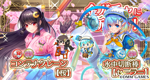 制服(青)属性期間限定SSR「水中切断棒【セーラー】」、桜(赤)属性期間限定SSR「コンテナクレーン【桜】」が金ガチャに登場!