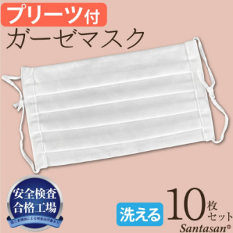 プリーツ付きガーゼマスク 10枚セット(水洗い可能)