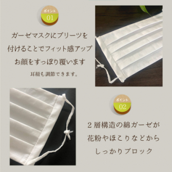 このたび、3月23日(月)よりプリーツ付きガーゼマスクを同社ブランド Santasan(http://santasan.net/) にて数量限定で予約開始します。