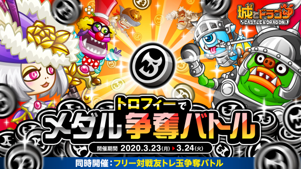 株式会社アソビズム(本社:東京都千代田区、代表取締役:大手智之)は、App Store・Google Playにて好評配信中の『城とドラゴン』で、「トロフィーでメダル争奪バトル」を2020年3月23日(月)より開催いたします。