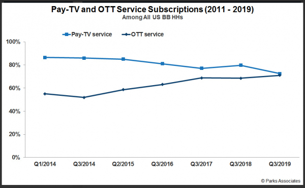 オンラインの有料テレビ(仮想MVPD)サービスは、有料テレビ業界の革新である。米国調査会社パークスアソシエイツ社(Parks Associates)の調査レポート「vMVPDサービスの採用と消費者習慣」は、オンライン有料テレビサービスの成長カテゴリーと消費者間でのこれらのサービスの認知を査定している。オンライン有料テレビサービスの導入率を計測し、加入者の年齢層、支払金額、価値観、利用、態度などの詳細を示している。また、オンライン有料テレビサービスを従来の有料テレビサービスと比較し、その与える影響を明示している。