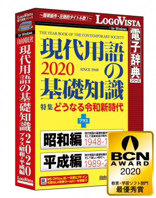 ロゴヴィスタ株式会社は、パソコン用電子辞典において絶大なる信頼と実績を誇るベストセラー「LogoVista電子辞典シリーズ」の新作として、Windows版『現代用語の基礎知識2020 プラス 昭和・平成編』を、2020年5月1日(金)より、パソコンショップ、カメラ系量販店、大手書店、ダウンロード販売サイトなどで発売いたします。