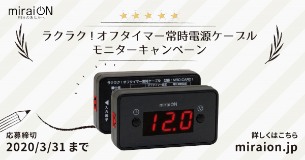 ミスターカード株式会社(本社:埼玉県川口市)は、miraion 「ラクラク!オフタイマー常時電源ケーブル」のモニターキャンペーンを2020年3月24日~31日まで実施します。