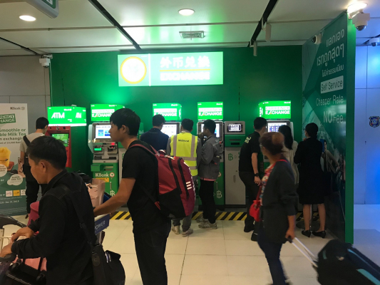 カシコン銀行は昨年10月21日、空港内にアクトプロのSMART EXCHANGEを設置。タイバーツを3カ国(米ドル、ユーロ、日本円)の通貨に、また12カ国の海外通貨をタイバーツに、24時間いつでも最適なレートで両替する事が出来ます。