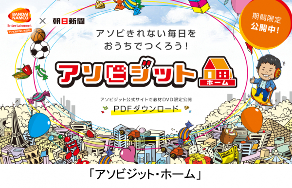 株式会社バンダイナムコエンターテインメントは株式会社朝日新聞社と共同開発した小中学校向けアクティブラーニング型キャリア教育プログラム「アソビジット」を、自宅学習向け教材「アソビジット・ホーム」として、本日3月26日より期間限定でワークシートテキストおよび動画教材を提供します。