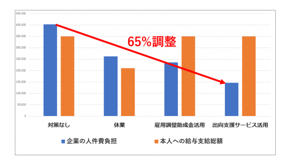 また、休業や雇用調整助成金を活用した場合と比較しても最大の効果を得られます。