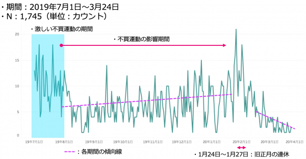 ・韓国の不買運動による影響と比較すると、新型コロナウィルスの減少の方が影響が大きい