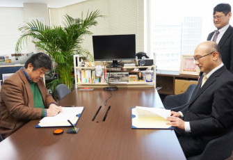 ※写真左 左側:兵庫県警察本部生活安全部サイバー犯罪対策課長 野口様 右側:KDL代表 永吉、写真下:調印の様子
