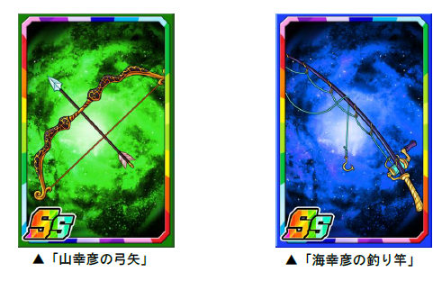 ダンジョンのボスモンスターを倒すと、まれに新たな限定子分カード「山幸彦の弓矢」「海幸彦の釣り竿」が手に入ります。